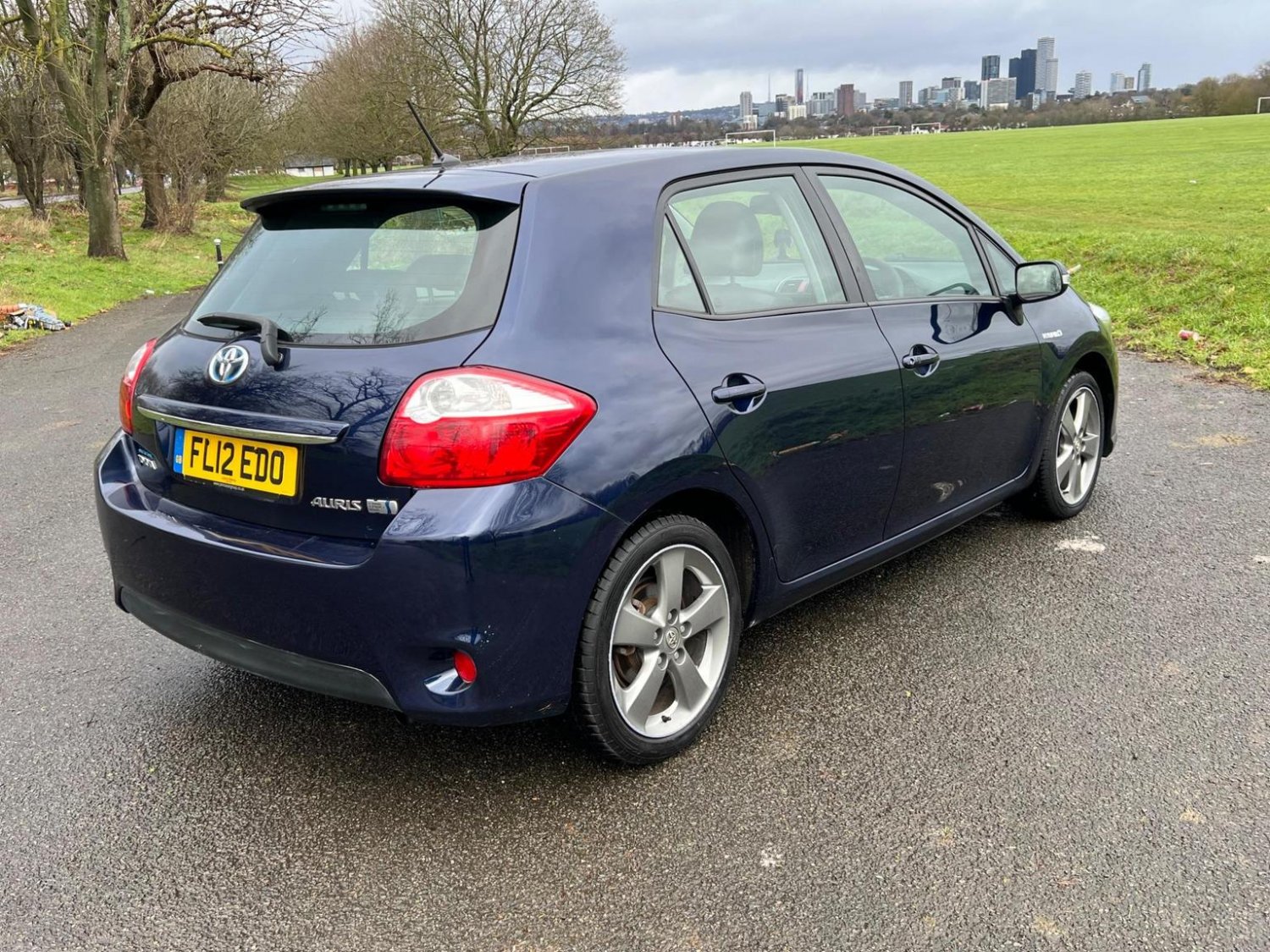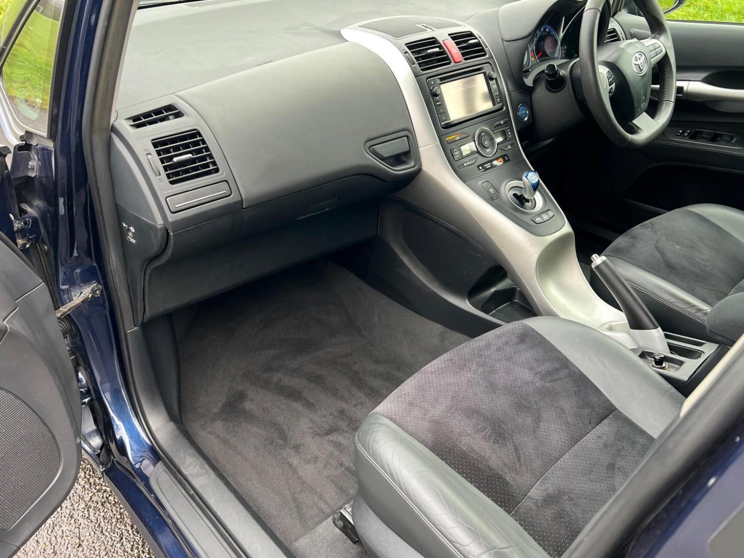 This is a 2012 Toyota Auris 1.8 VVT-h T Spirit, a petrol hybrid car with only two previous owners. It comes with a full service history, with the last service completed on 29th January 2025 at 92,030 miles. The car is equipped with the Toyota Touch and Go navigation system, as well as rear privacy glass.